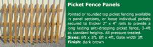 J.Oddy & Sons have a large selection of high quality fence panels in stock, picket panels (known also as pallisade), wooden gravel boards, closeboarded fencing panels, lapped fence panels, trellis fence panels, feathered edge panels, wattle hazel hurdles in many different sizes.